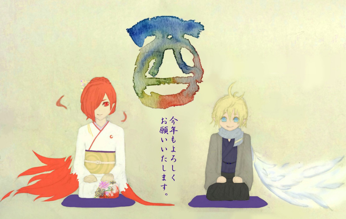 「酉年だね。クレィニァとオルトいるね。紅白で鳥だね。これ逃したら12年後だね。やるしかないよね。ねえクレィニァとオルト描いて」って請求しまくったらくれました(悪魔)。