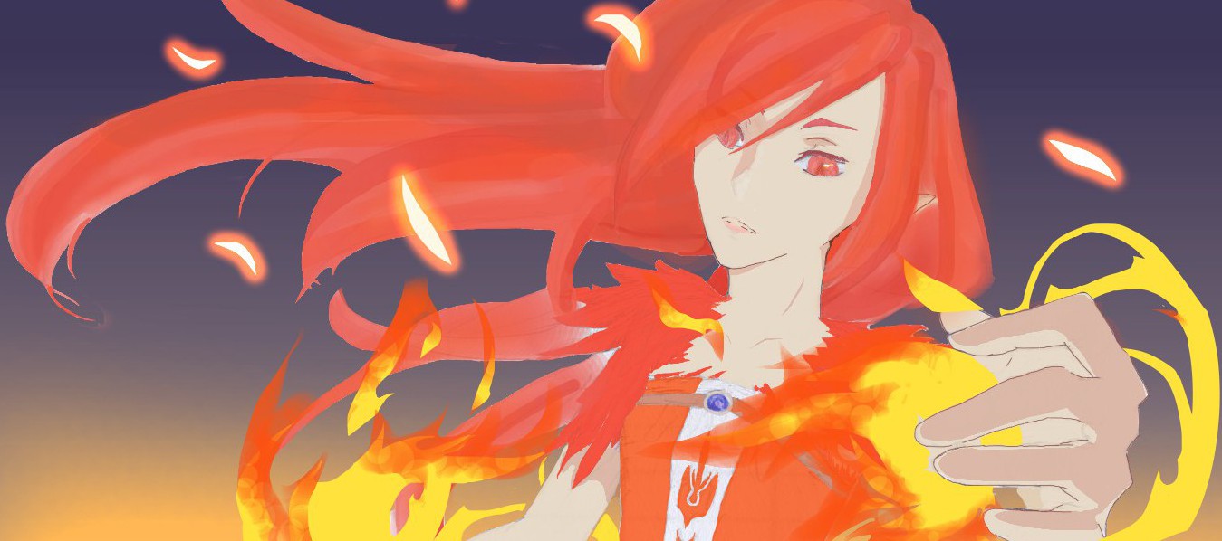 テイルズやってる私なので、意図しなくてもああいうイメージになるというか、あれしかないというか。終盤はゼロスのカットインを何度見かしながら描きました(´・ω・`)どうやんのあのキラキラ、とか思いながら。